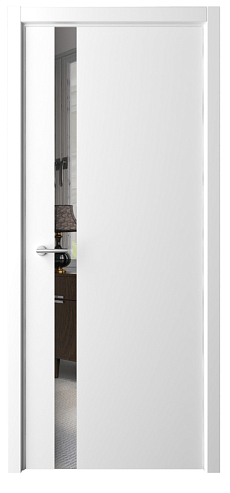 Дверь Геометрия-5 ширина 90 см Белый Эмаль Зеркало грей кромка В цвет полотна в Твери