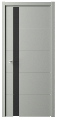 Дверь Геометрия-7 ширина 90 см Серый Эмаль Стекло черное с замком кромка В цвет полотна в Твери