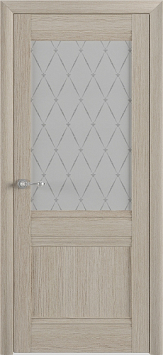 Межкомнатная дверь от фабрики Albero создана для того, чтобы порадовать Вас роскошной красотой модели: Модель относится к царговой конструкции двери. Состоит из сборных деталей (царг), образующих прочную рамочную конструкцию в которую установлены различные элементы изготовленные из МДФ, высокой плотности: 850 кгм3. В основе царг используется сосновый брус сечением 25х40мм. В остекленном варианте, в качестве остекления используется матовое стекло с художественным рисунком "Гранд". Идея рисунка соединить стильный ромб и благородный цветок «Лилия». Покрытие Eco-Tex — это многослойное покрытие на натуральной основе (целлюлоза, смола) с выраженной древесной текстурой, повторяющей срез ясеня или бука. Покрытие абсолютно экологически чистое и приятное на ощупь. Дверь не имеет сторонности и является универсальной.
